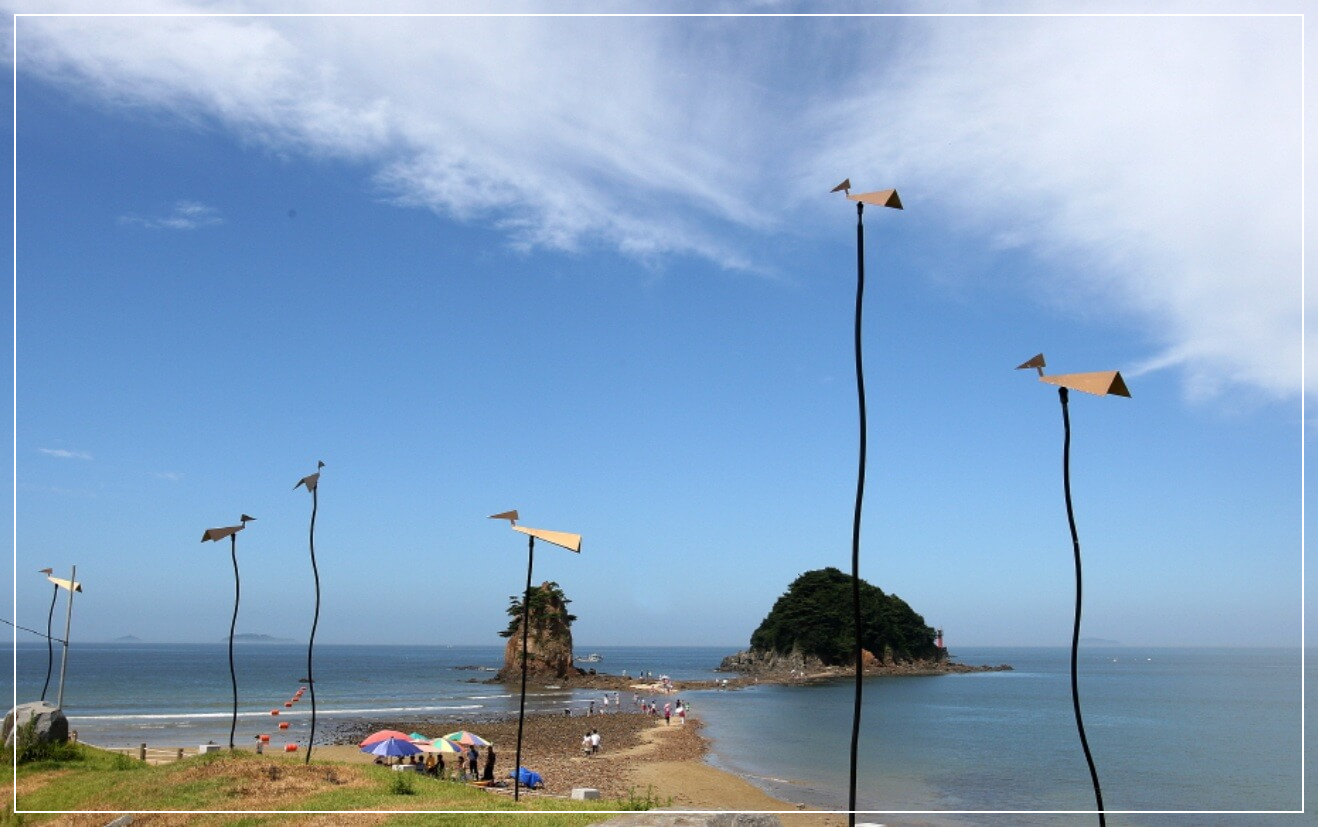 안면도 서남단 꽃지해변은 5 km 백사장 너머 바다 위로 솟은 두 개의 바위섬(할미·할아비바위)이 붉은 태양을 삼키는 순간을 보기 위해 전국 사진가가 찾아옵니다. 해당화가 뒤덮은 모래사장은 바다 내음과 꽃향기를 동시에 품고, 수심이 얕아 어린 자녀가 뛰놀기에도 안전합니다.